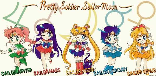 The Pictur Below Is The Inner Scouts, they are Sailor Venus,Sailor Mercury,Sailor Masr,Saior Jupiter,and they one and only Sailor Moon/w Luna.